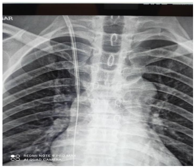 Figure 1: Chest X-ray showing guidewire within hemodialysis catheter.
