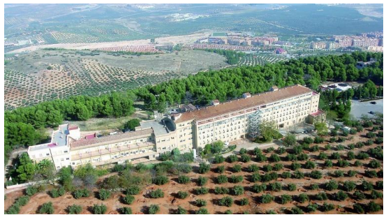 The hygienic-dietary cure of rest in the open air was one of the most fundamental parts of the treatments. That is why in 1930 the construction of the "El Neveral Sanatorium" began, located on the mountain near Jaén. The dry, sunny and slightly rainy climate of this city would contribute to the healing of the sick. Initially, the project had a capacity of 110 beds, but given the high number of patients on a waiting list to be admitted, which ranged from 6 months to a year, it was expanded to 400 beds [10]. It had radiology equipment, a laboratory, covered resting galleries and two operating rooms a day in which thoracic surgery was performed, making the hospital a leading surgical center at a national level. If the original tuberculosis patients remained bedridden for an average of 6 months, thanks to advances in medical-surgical treatment, tuberculosis patients in the 1950s remained for weeks. Figure 1 represents the El Neveral hospital in its current state.