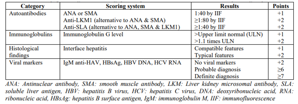 The diagnosis of AIH in the setting of HAV and the decision to start immunosuppressant therapy continues to be a management dilemma for hepatologists. To address this dilemma, there have been reports of prolonged acute HAV infection that can mimic AIH [4].