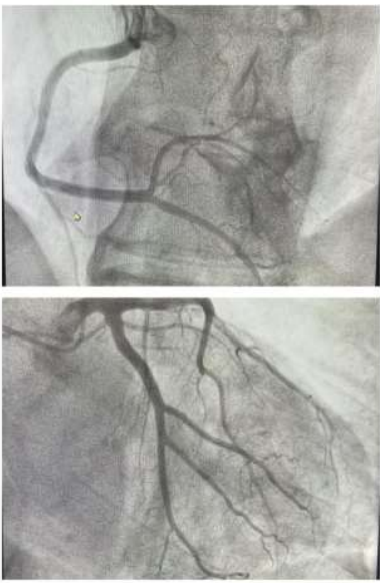 Coronary angiography showed normal coronary arteries (figure 3). Extensive investigations have shown no findings supporting endocrine, metabolic, infectious, or toxic etiologies of cardiomyopathy.