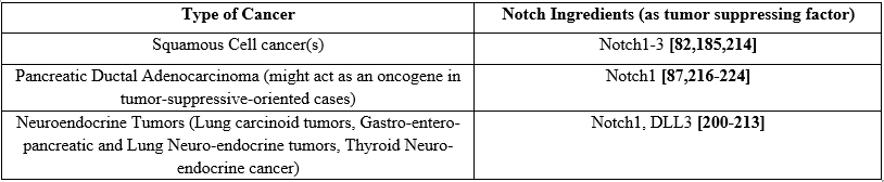 Table 2. Notch signaling pathways in Carcinogenesis acting as tumor suppressing factor