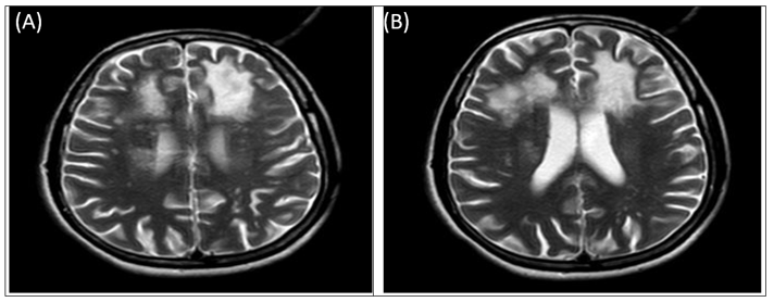 MRIs of the brain have a high diagnostic value for PML. Single or multiple abnormal signals, round or sector-shaped, can be seen in the periventricular or subcortical white matter, which can be fused with one another and distributed asymmetrically. T2-weighted images and FLAIR reveal hyper intense areas, whereas T1-weighted images reveal hypo intense areas devoid of mass and enhancement. Lesions that extend to the subcortical/juxtacortical white matter are frequently seen on diffusion-weighted images, with peripheral patchy diffusion restriction [5]. Although histopathological evidence is the gold standard for PML diagnosis, the diagnosis is usually suggested by MRI and confirmed by CSF PCR for JCV DNA [6].