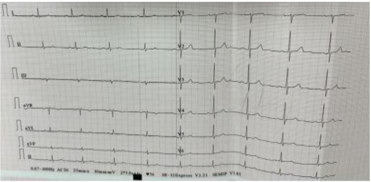 Transthoracic echocardiography was performed and showed no structural cardiac abnormalities, with a left ventricular ejection fraction (LVEF) of 60%.
